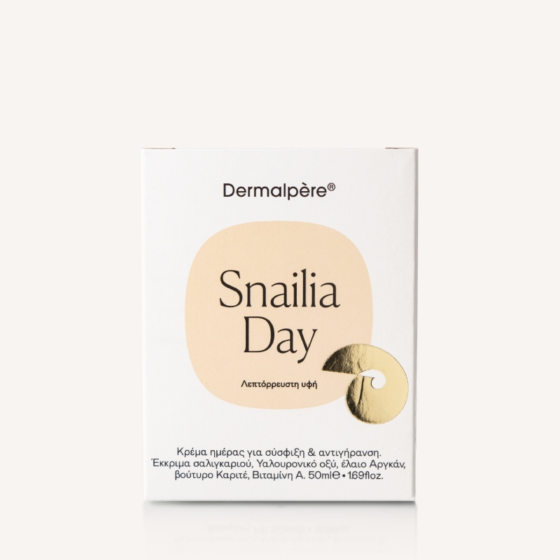 Η KΡΕΜΑ ΗΜΕΡΑΣ ΛΕΠΤΟΡΡΕΥΣΤΗ ΥΦΗ Snailia Day, χάρη στη μοναδική της σύνθεση, πολλαπλής δράσης βοηθάει στη σύσφιξη και τόνωση του δέρματος ενώ παράλληλα βοηθάει στην πρόληψη των σημαδιών γήρανσης. Ειδικότερα, λεπτές γραμμές, ρυτίδες, απώλεια όγκου, έλλειψη λάμψης και αφυδάτωσης. Αναζωογονεί, θρέφει και αναπλάθει την επιδερμίδα συμβάλλοντας δραστικά στην αποκατάστασή της.